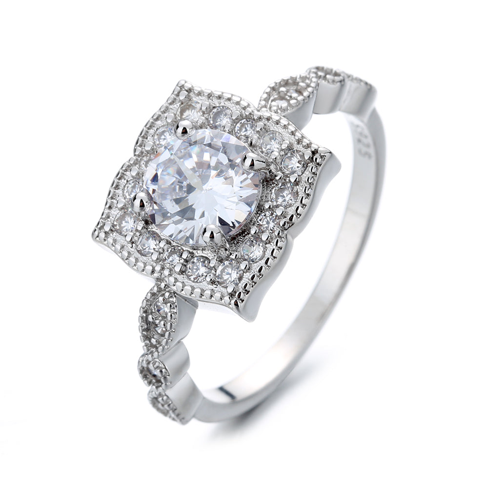 Sterling Silver Milligrain Detail Ring with Brilliant Cut Simulated Diamond