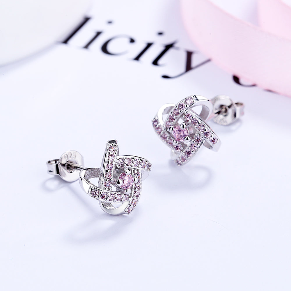 Sterling Silver Love Knot Stud Earrings with crystals from Swarovski