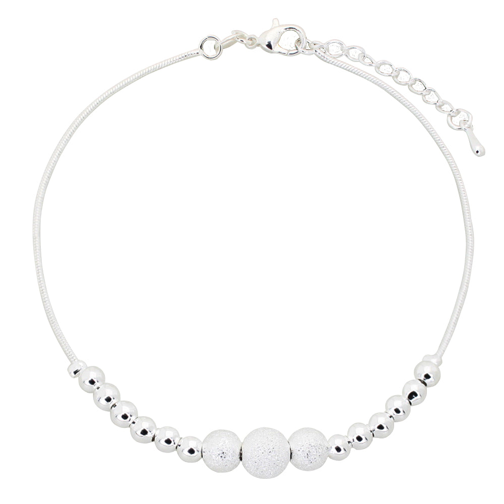 The ball beads are crafted from high-quality materials, with a smooth and polished surface that reflects the light and adds a touch of shine to the design. The anklet is available in a variety of materials, including sterling silver, 14k gold, and rose gold, allowing you to choose the perfect finish to suit your style and preferences.