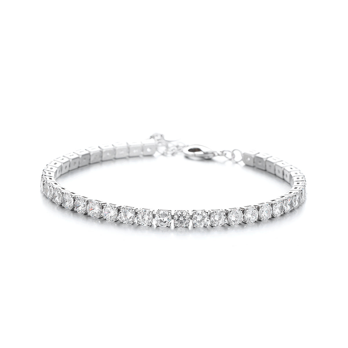 The crystals are expertly cut to maximize their brilliance and are set in a continuous row, giving the bracelet a classic and timeless look. The crystals come in a variety of colors, including clear, pink, blue, green, and purple, adding a stunning pop of color to the bracelet.