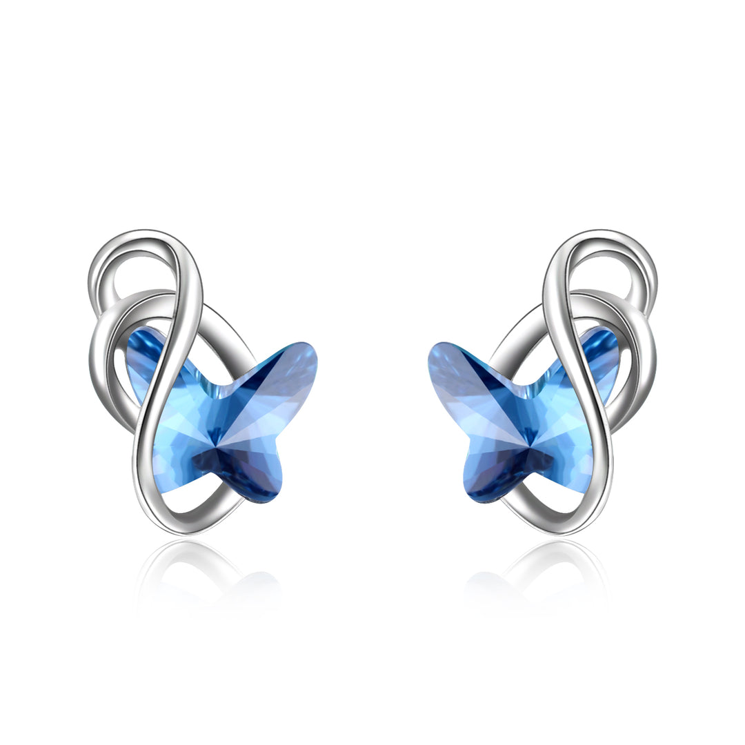 Sterling Silver Blue Butterfly Earrings with crystals from Swarovski