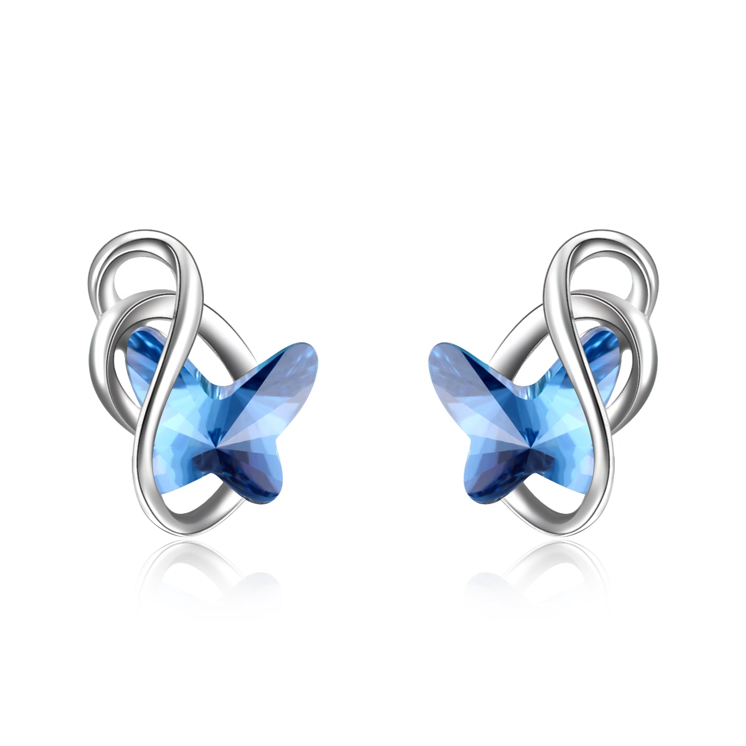 Sterling Silver Blue Butterfly Earrings with crystals from Swarovski