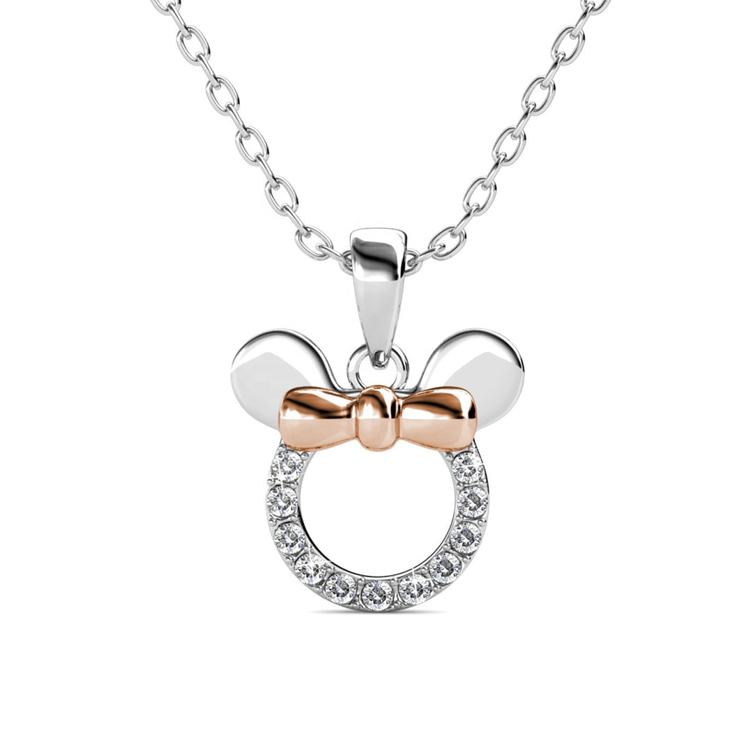 18K White Gold Mouse Ears Pendant Necklace with Crystal