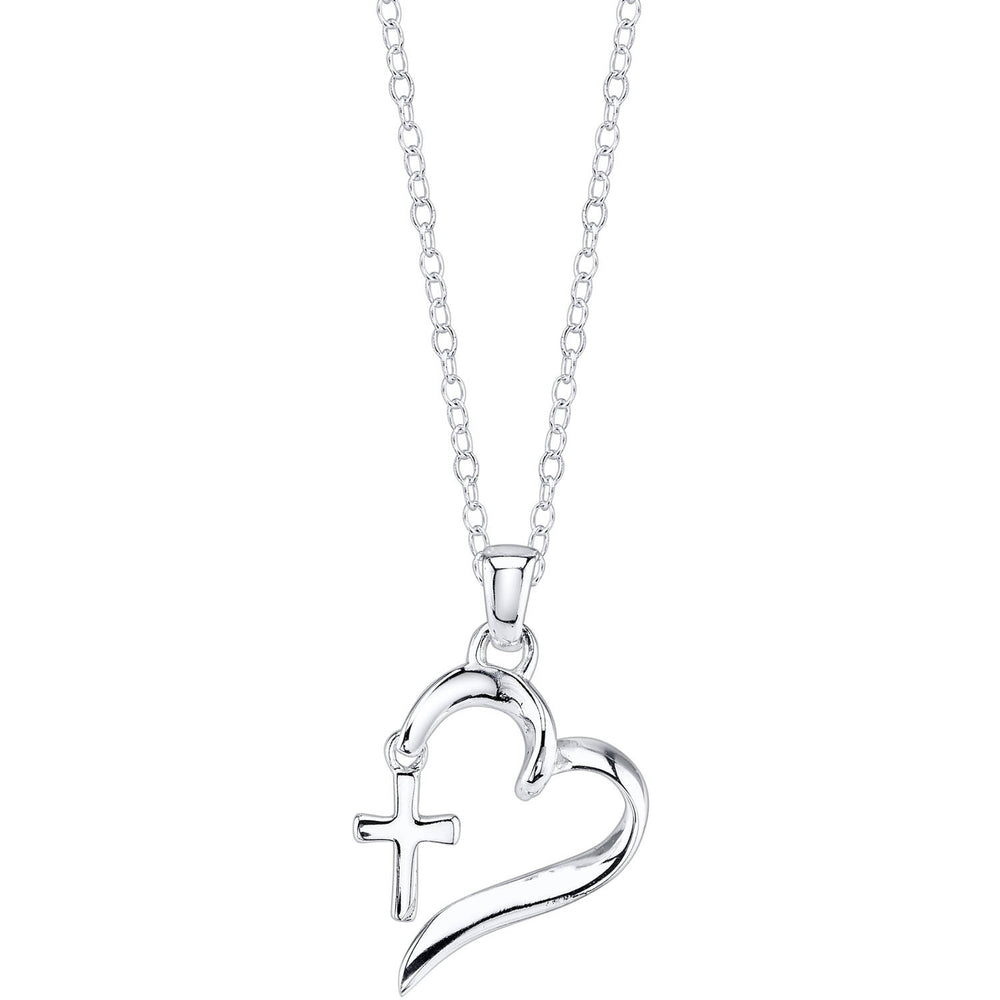 18K White Gold Faith Hope Love Cross and Heart Pendant Necklace