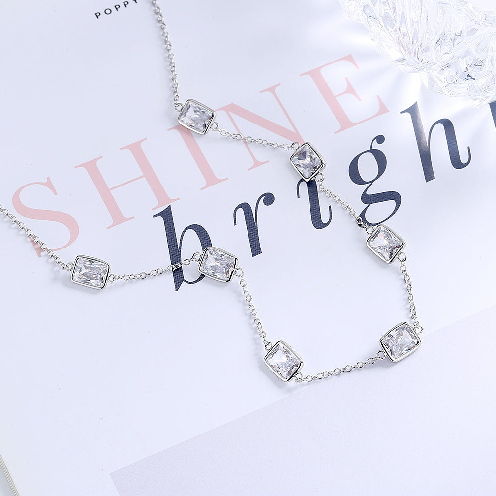 18K White Gold Radiant cut Crystal Necklace