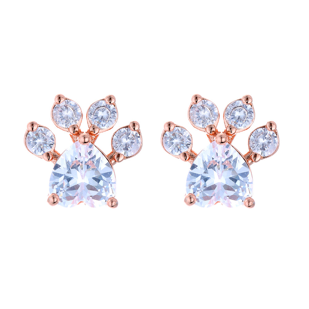14K Rose Gold And Sterling Silver Paw Earrings With Crystals