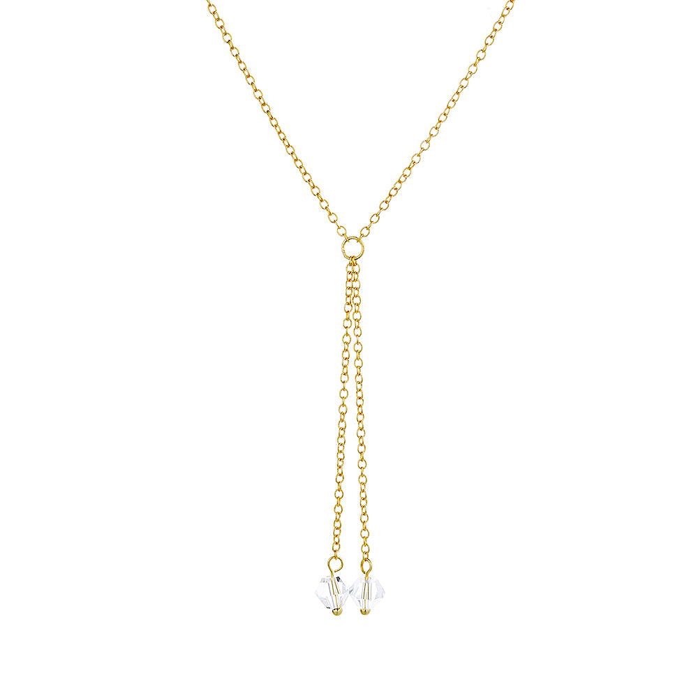 14K Gold and White Gold Double Strand Lariat Pendant Necklace with Crystals