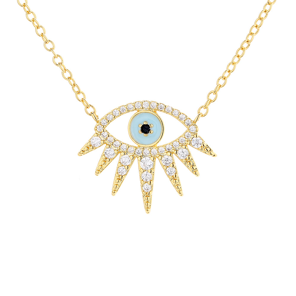 14k Golden and Sterling Silver Spoon Pendant Necklace with crystals