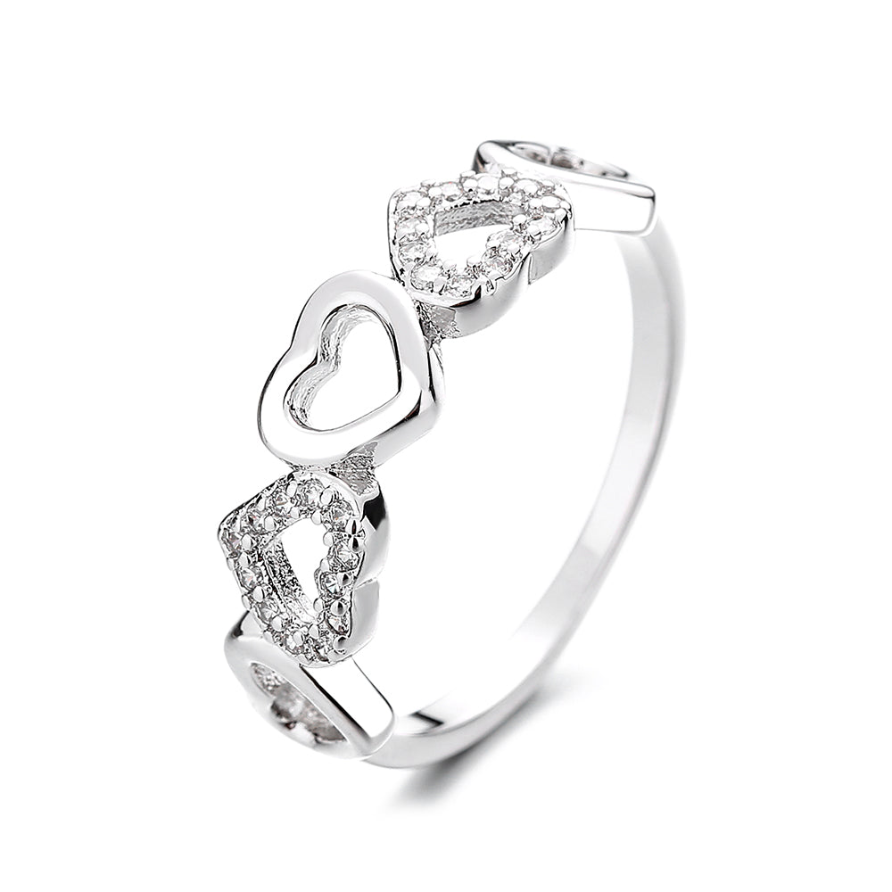 Sterling Silver Heart Ring with Pave Simulated Diamonds